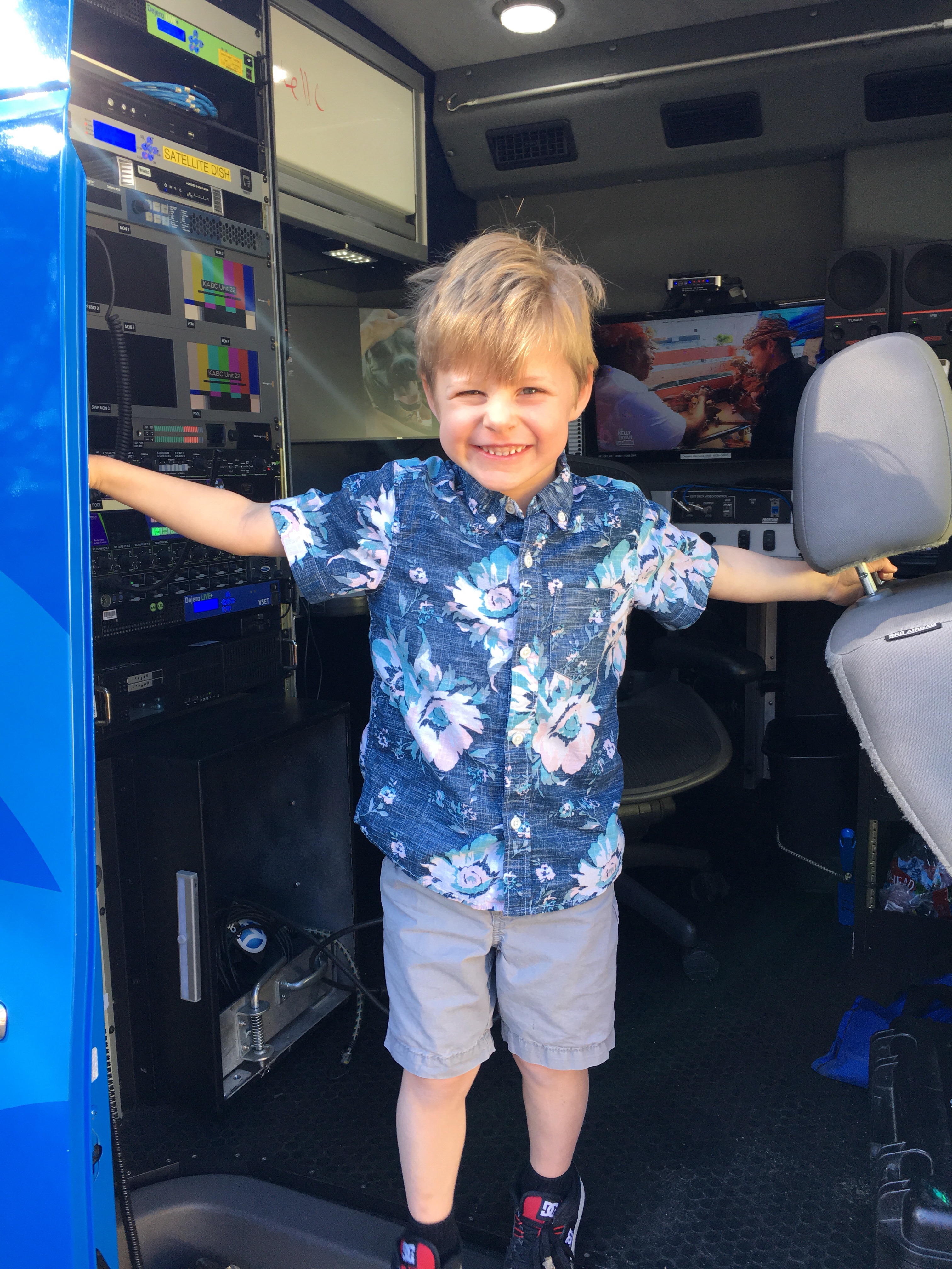 The students (and teachers!) were brimming with excitement this morning when Phillip Palmer and Mr. Chris, the camera man, made their appearance this morning. The students got to see the camera, hold the microphone and even go inside the truck!