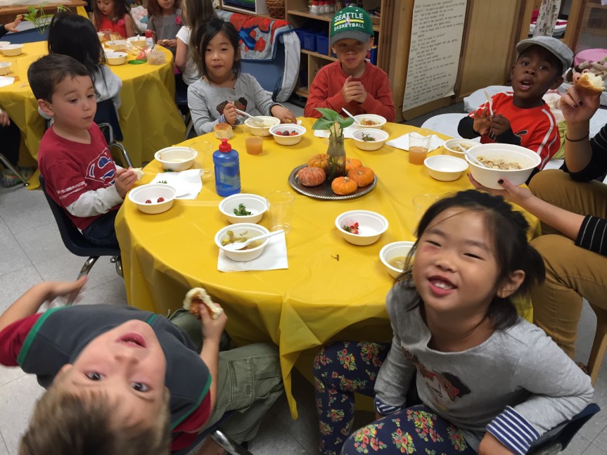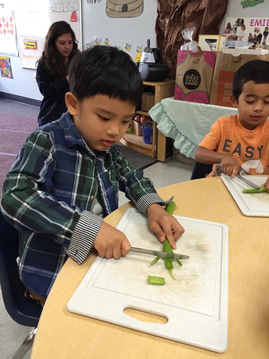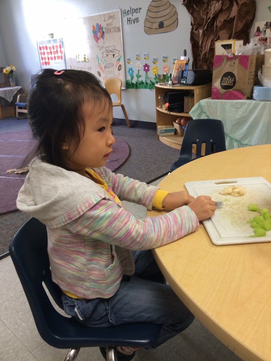 The friends in Room 5 have been hard at work getting our bulletin ready for the main lobby! They mixed up some sparkly puff paint and created whimsical snowmen. While they worked on their art, we worked some math foundations into the activity. We discussed ordering, shape, and size while we put each snowman together. They are very proud of their work and so are we! Check out their finished product in the main lobby for the remainder of the Christmas season.