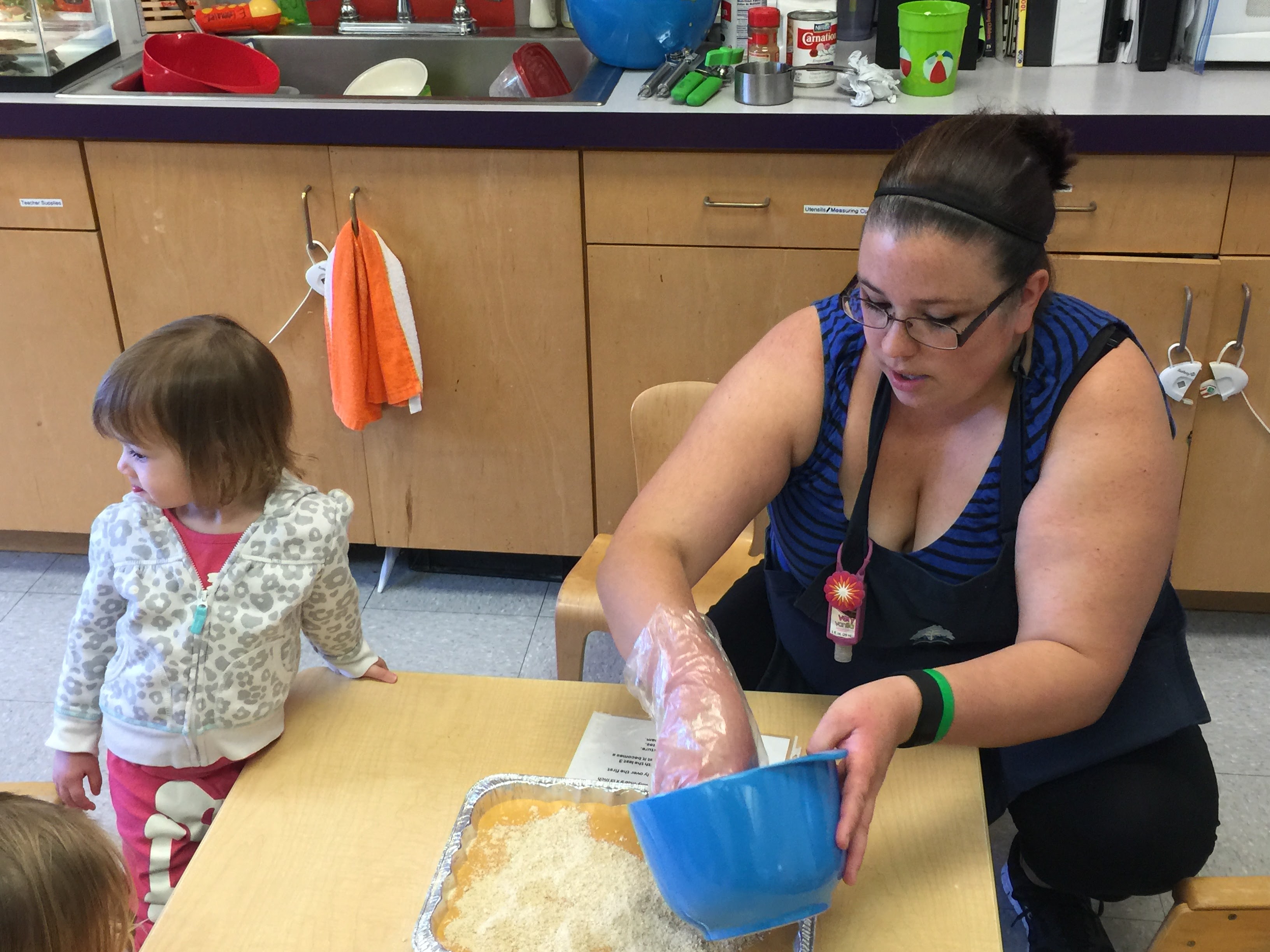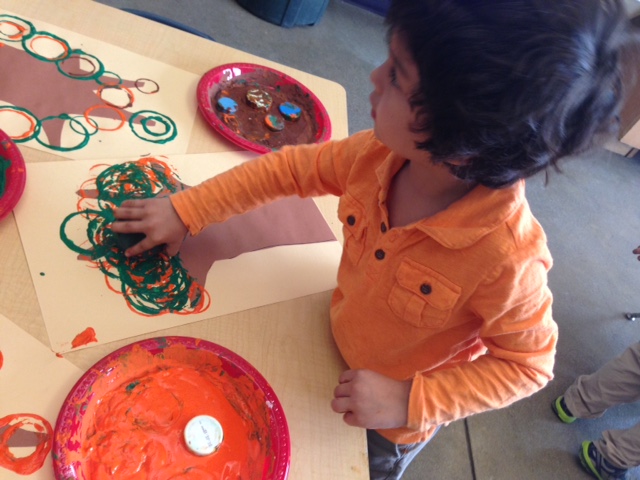 Friends in Room 4 have been busily learning about all things fall: pumpkins, apples, planting, harvest, and more! They have been learning to use their fine motor skills to sort beautiful fall colored jewels, they are growing celery stalks from celery stems, and they have been carefully putting together some crafty “quilted clothes” for a scarecrow that will be hung in the front lobby.