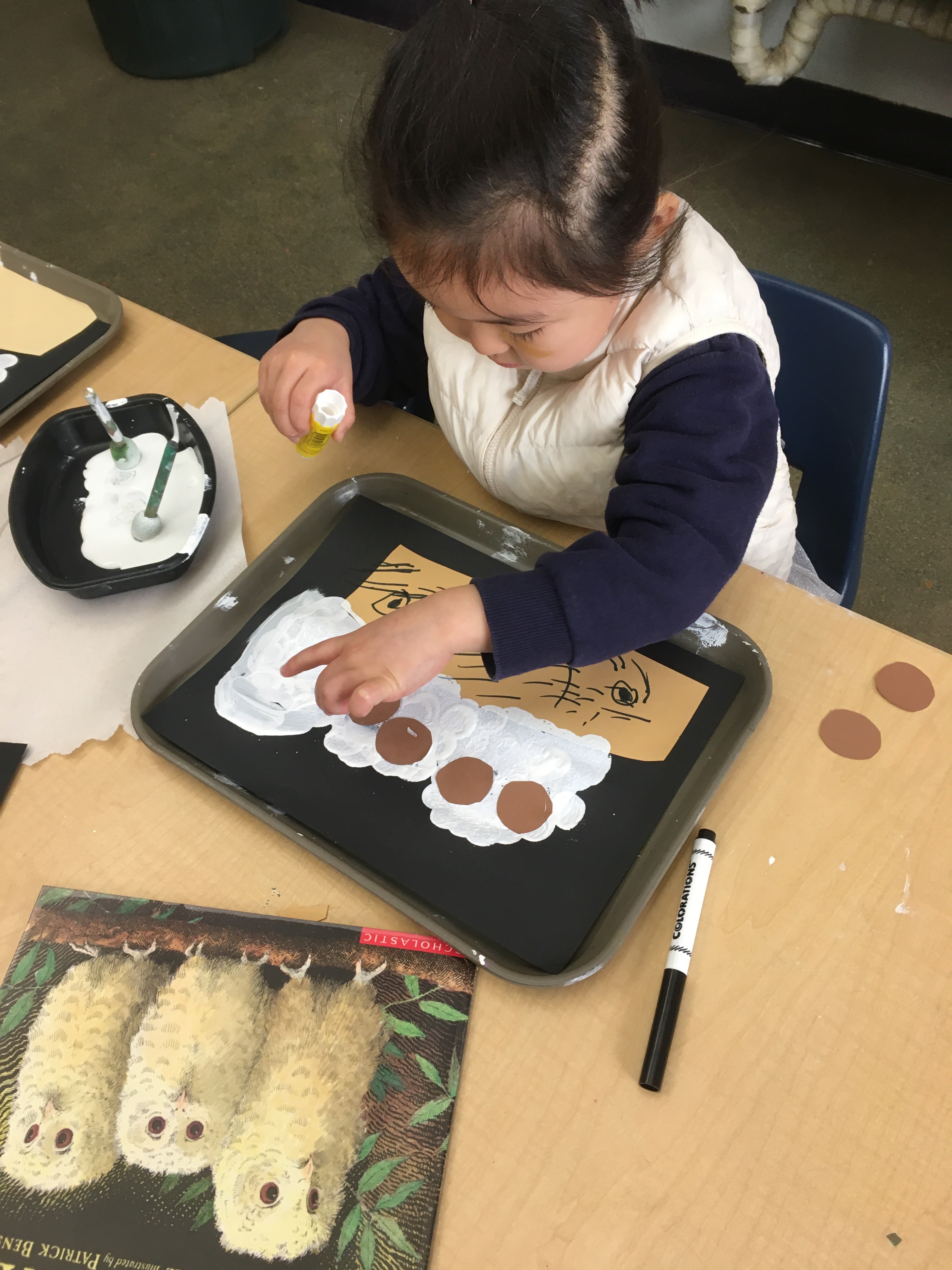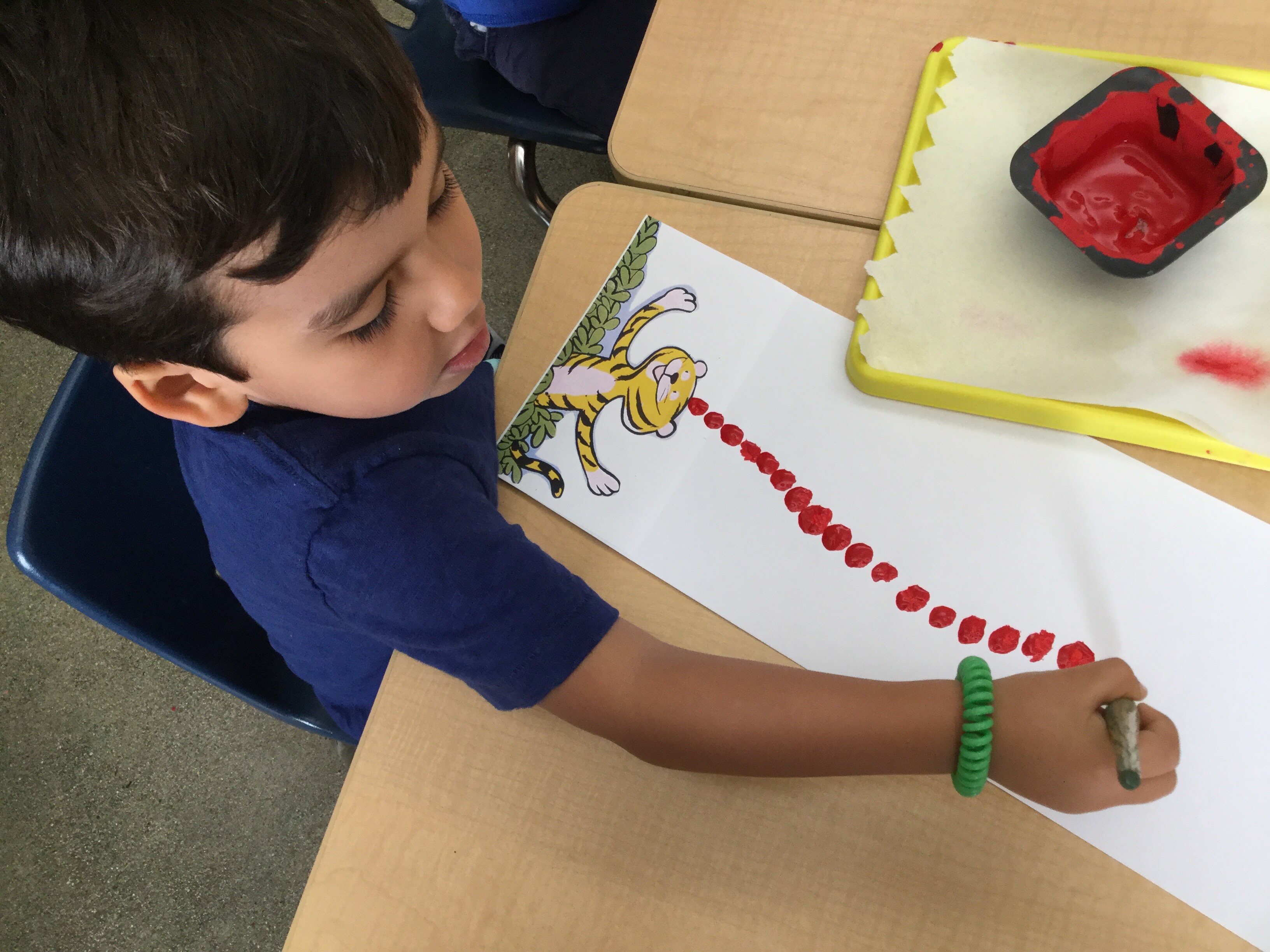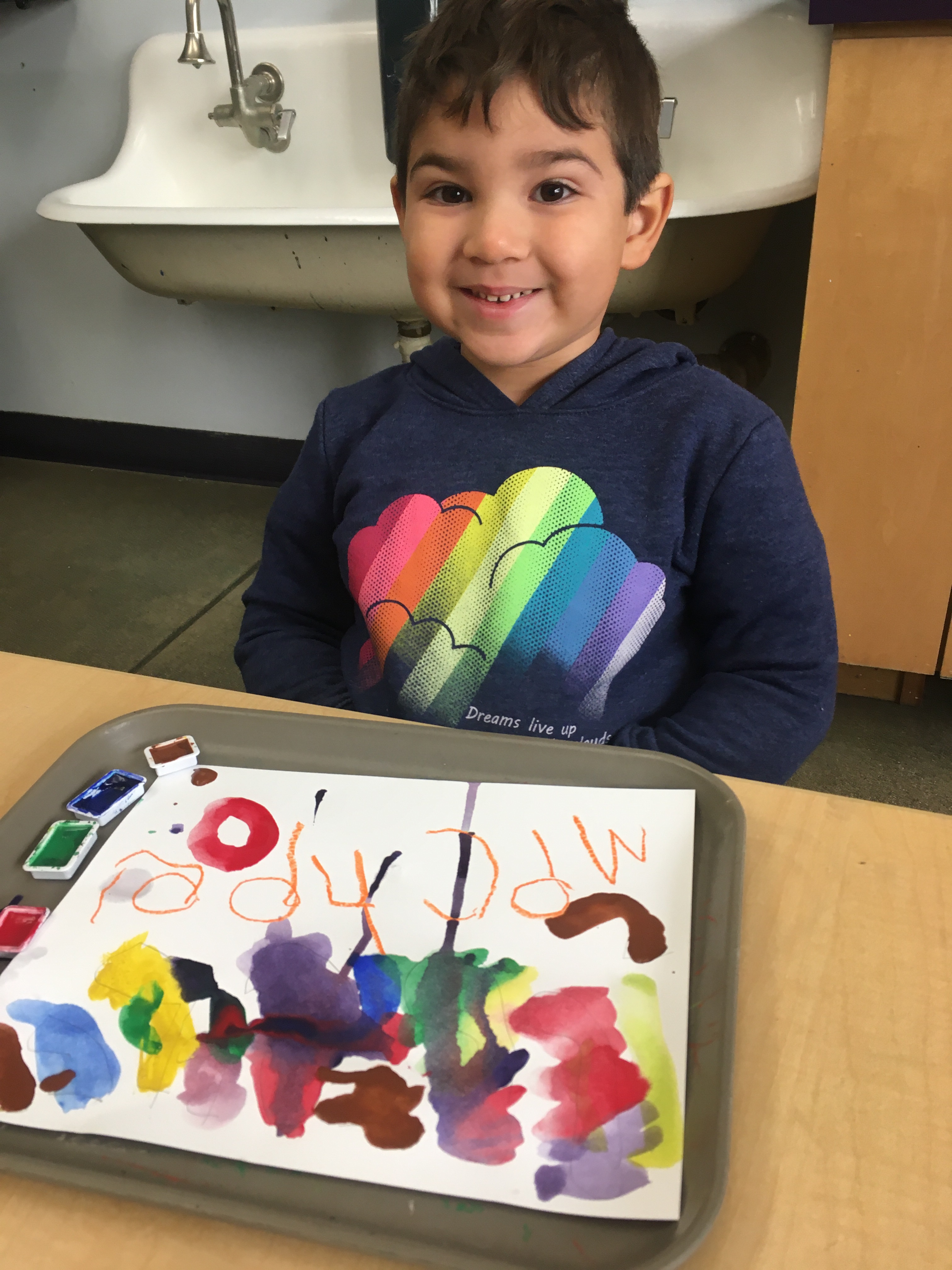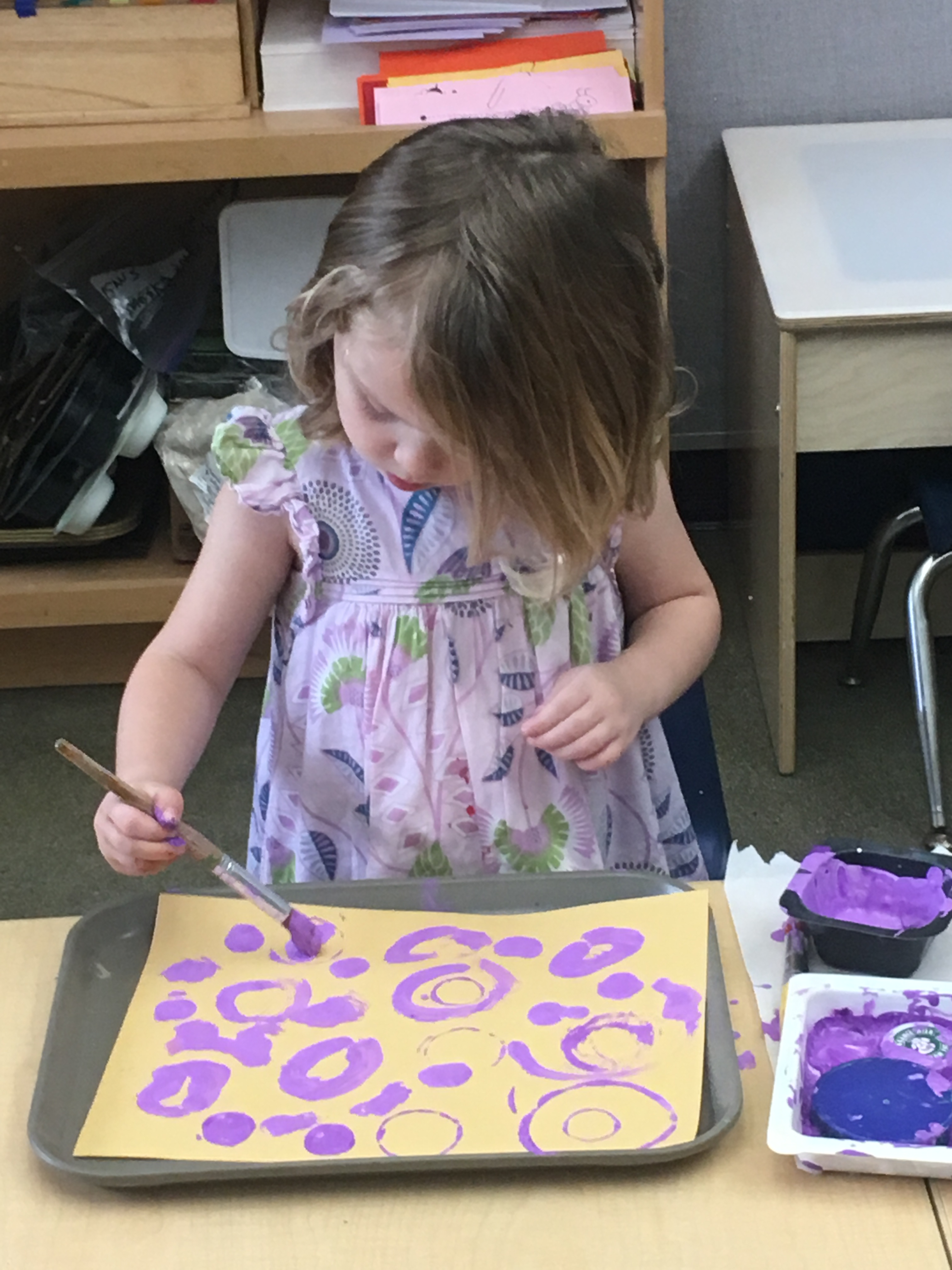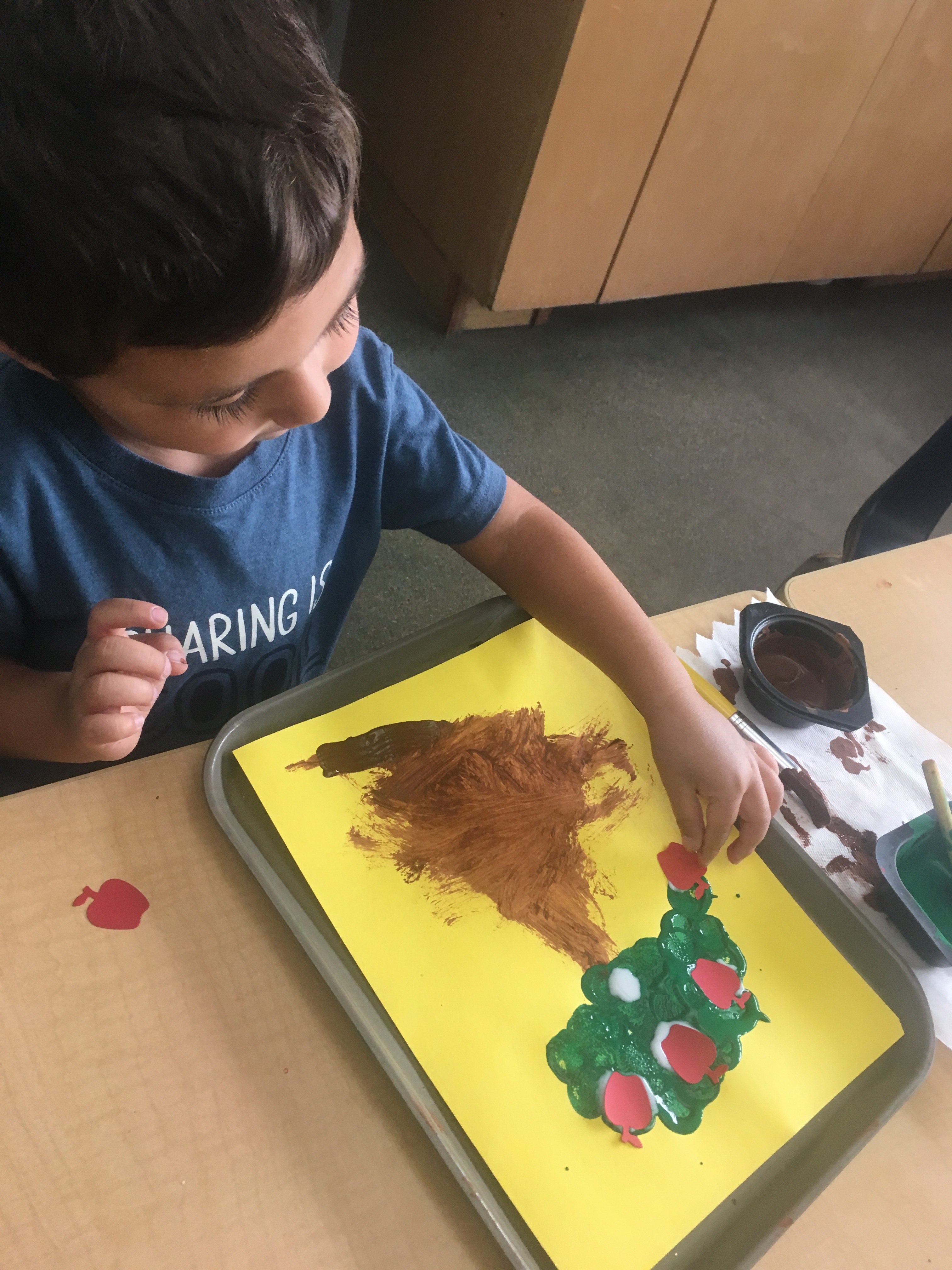 We looked at different pumpkins and gourds. We talked about the different characteristics we saw and colors. I also read them the story “Hello Fall”, by Deborah Diesen. This sweet little book celebrates all the wonderful things found in the fall season. They then painted their very own pumpkin patch painting. Enjoy! -Ms. Monica, Art Teacher