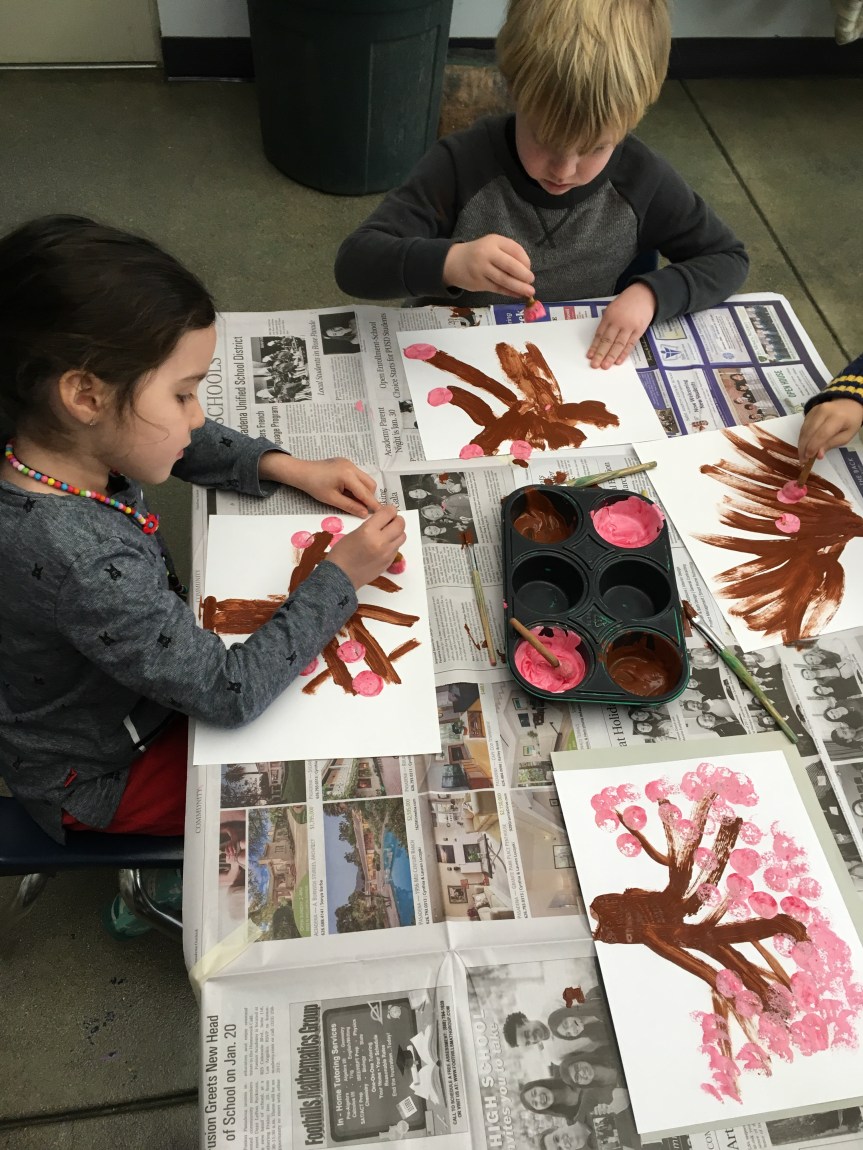 The children learned all about the Japanese artist Hiroshi Yoshida. He was a 20th-century Japanese painter and woodblock printmaker. We looked at his works, specifically the piece titled “Avenue of Cherry Trees”. I also shared real life photos of cherry blossom trees in the landscapes of Japan.