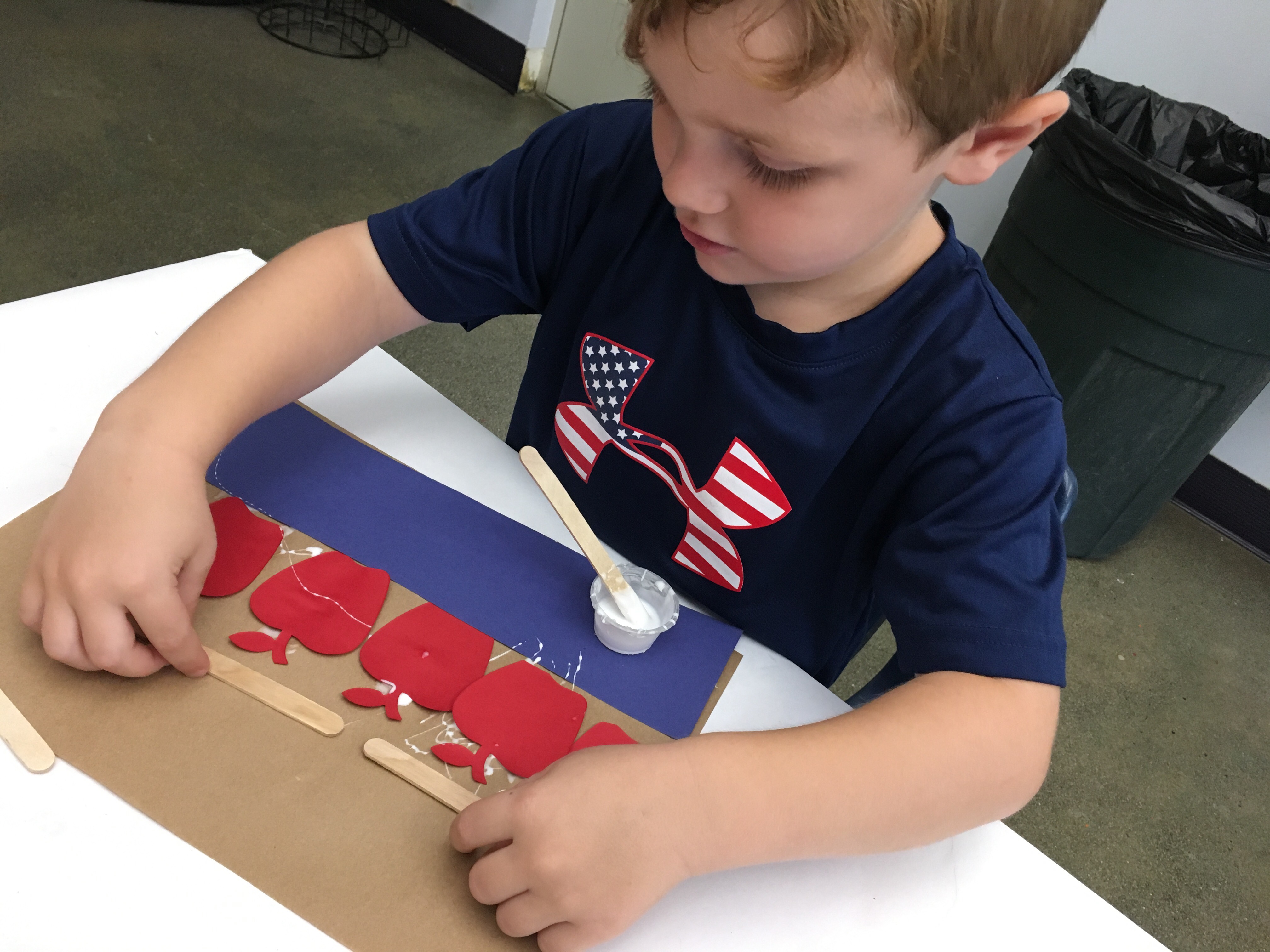 We had fun creating collages using recycled various plastic pieces. Some were buttons, marker caps, colored rectangular pieces and we even used bottle caps. We talked about what “abstract art”, is and the meaning of the word. I shared with them that it’s all about color, shapes and movements across a surface. I even pointed out what a “loud” piece looks like and what a “quiet” pieces looks like. I hope you find a great place in your home to display their art.