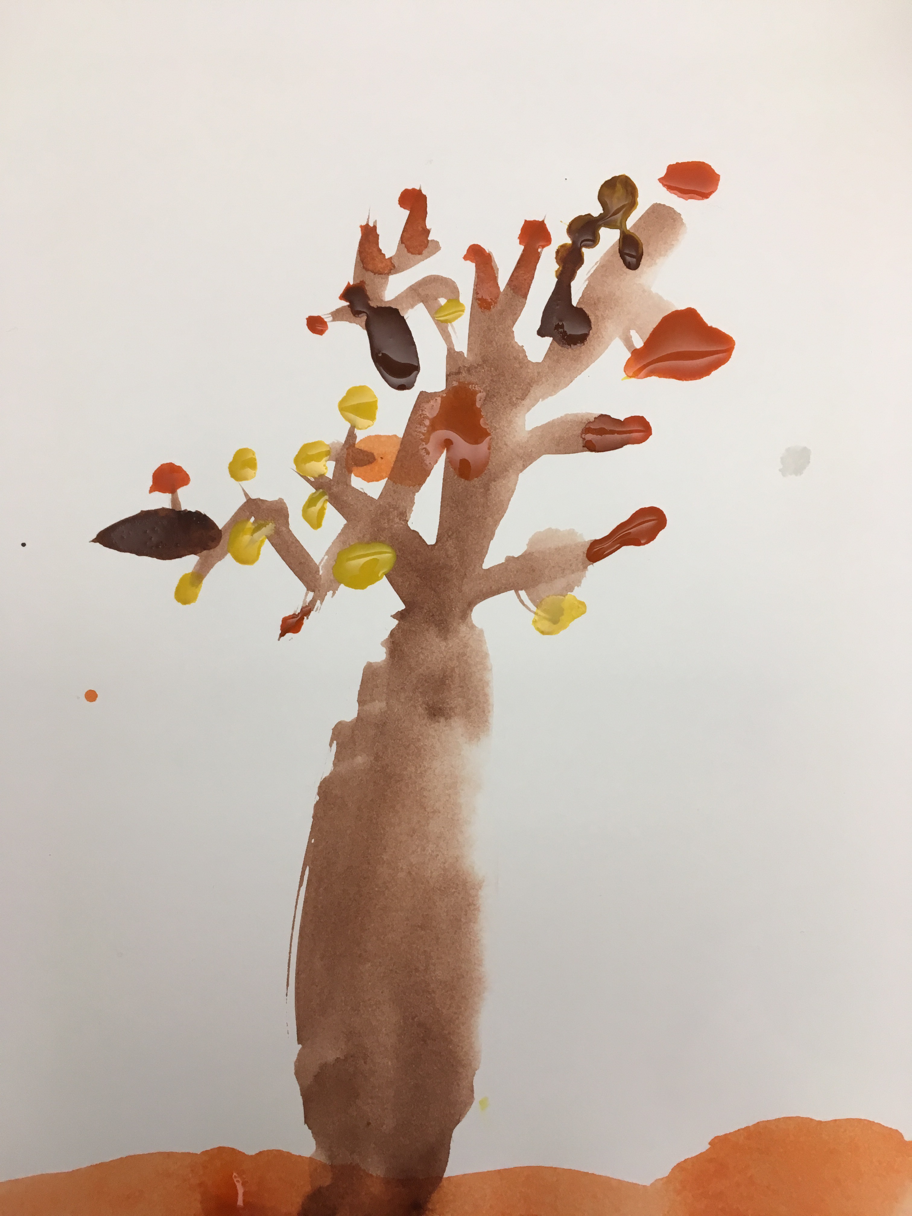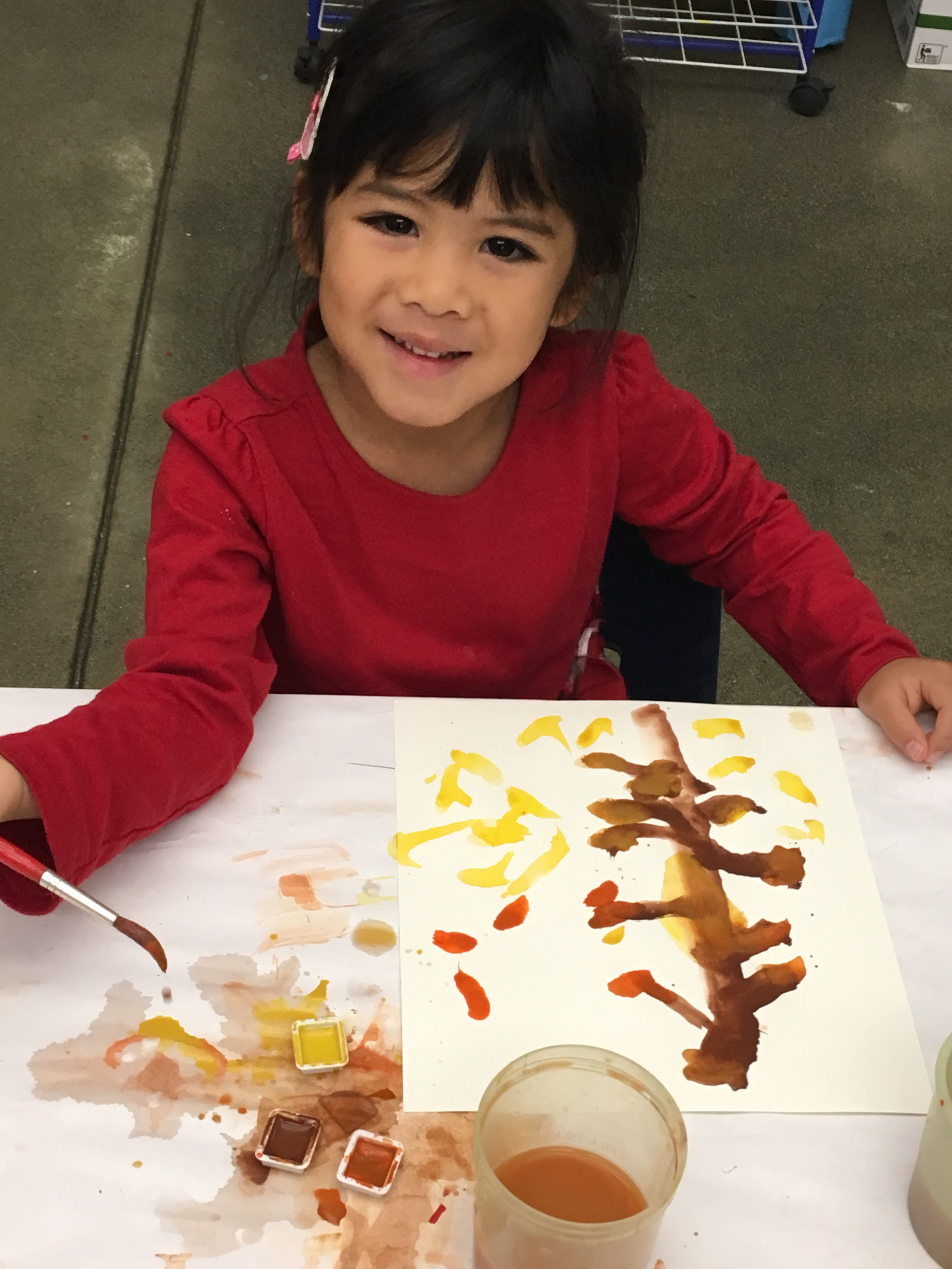 Fall is my personal favorite season, and because I’m bias, we tend to do various seasonally-based art projects during this season. We learn all about the different leaves and we investigate the process of the change of colors of the leaves. We also talk about how it gets darker earlier in the day, how it begins to get a little chillier, etc. For this seasonal project, the children painted a beautiful fall tree painting using water colors. Others painted a pile of leaves…