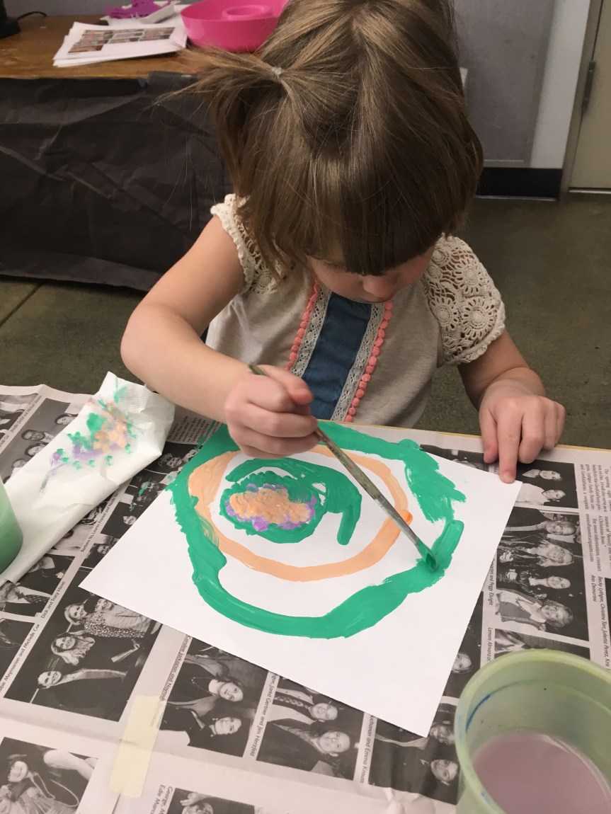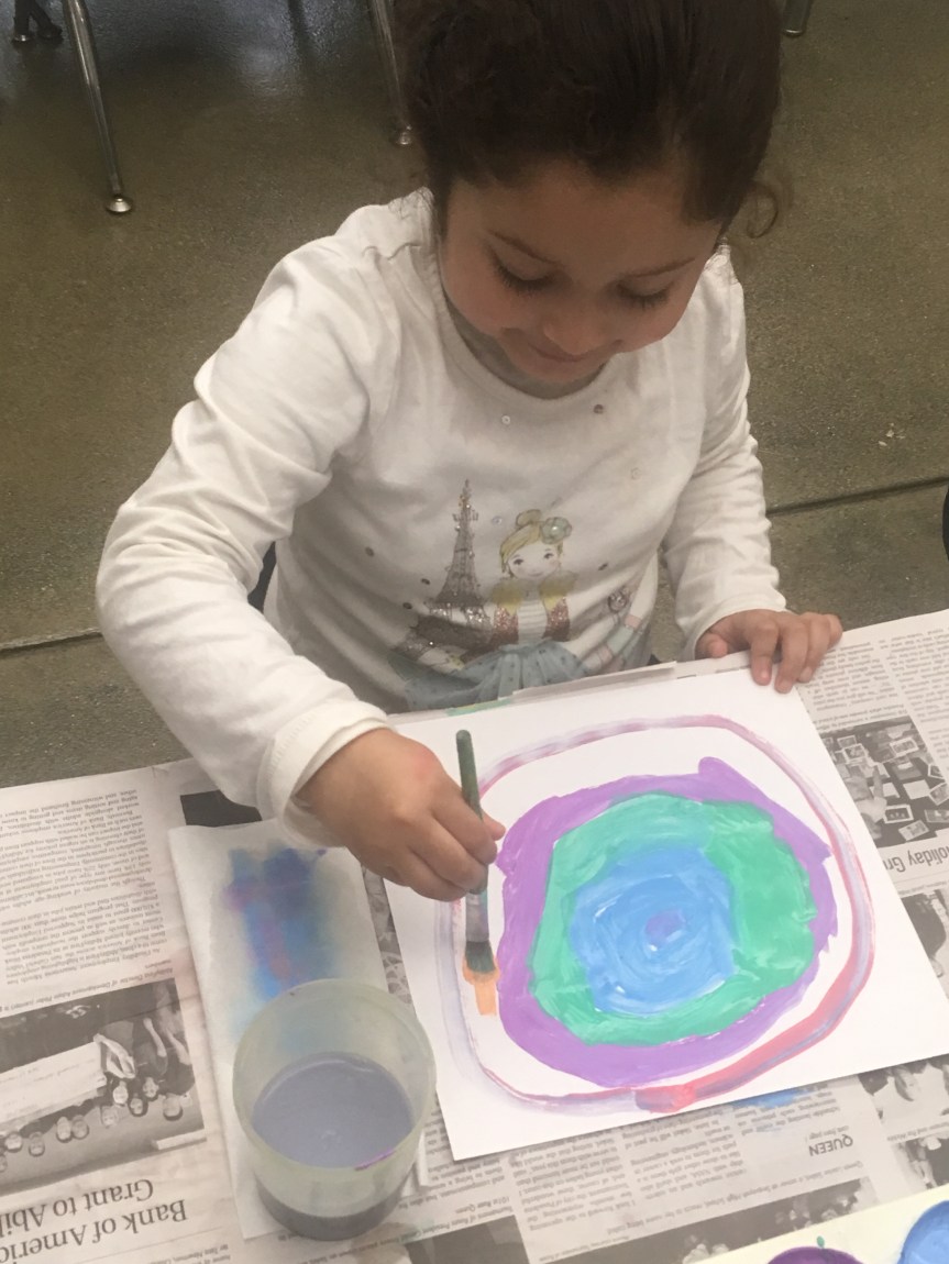 I read the inspiring story, “The Dot,” by Peter Reynolds. It’s an inspiring story about art, not giving up, and seeing where art takes you. The students then painted their very own dot painting and expressed themselves based on the story. Enjoy!