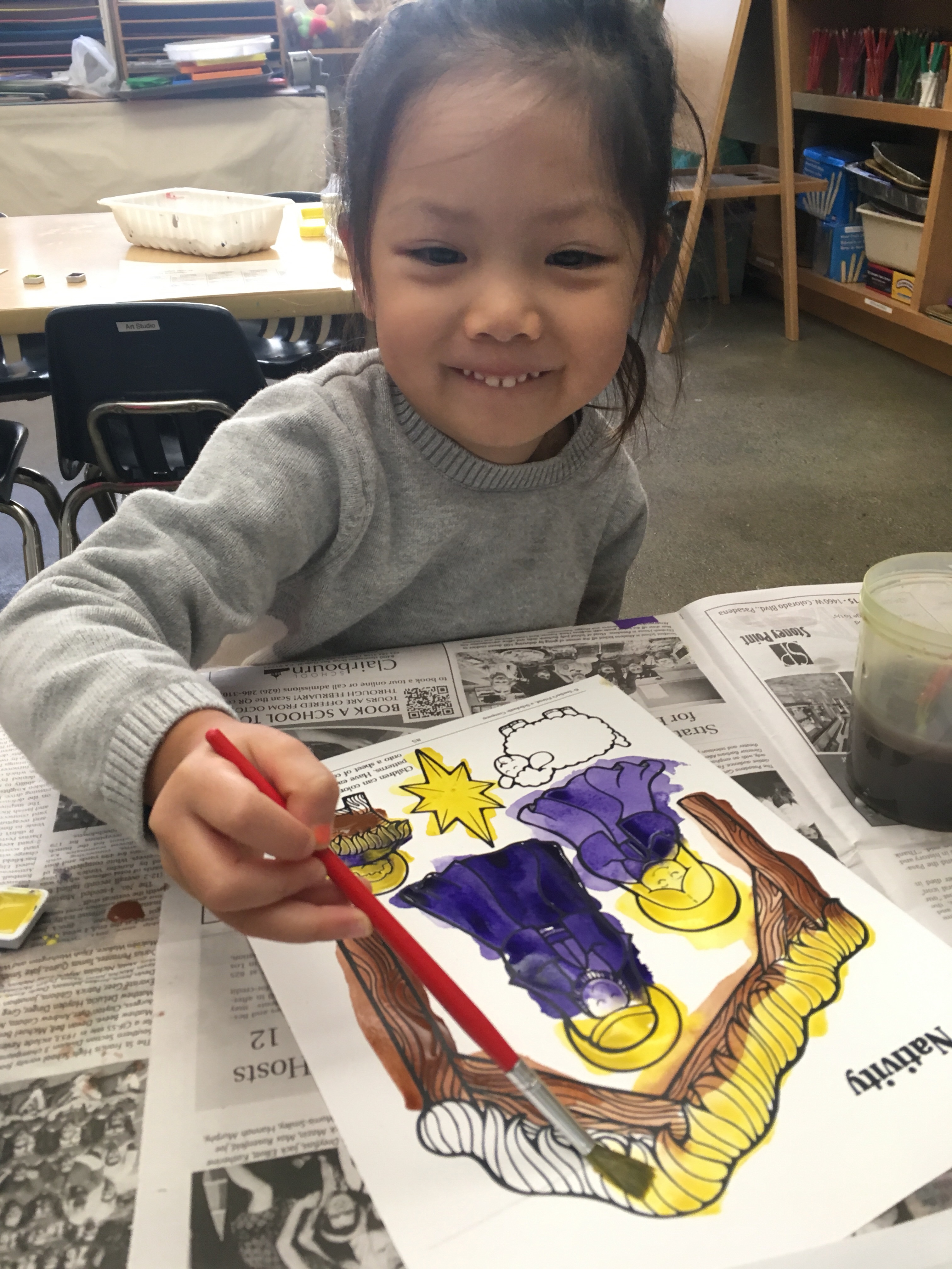 Our little ones are so creative and love to color, stamp and sticker. Scribbling is so important to build dexterity and begin to understand that marks and lines can represent shapes, letters, objects, and people! We’ve been working with crayons, colored pencils, oil pastels, and chalk! As the year goes on, we’ll continue to progress using other fun materials.