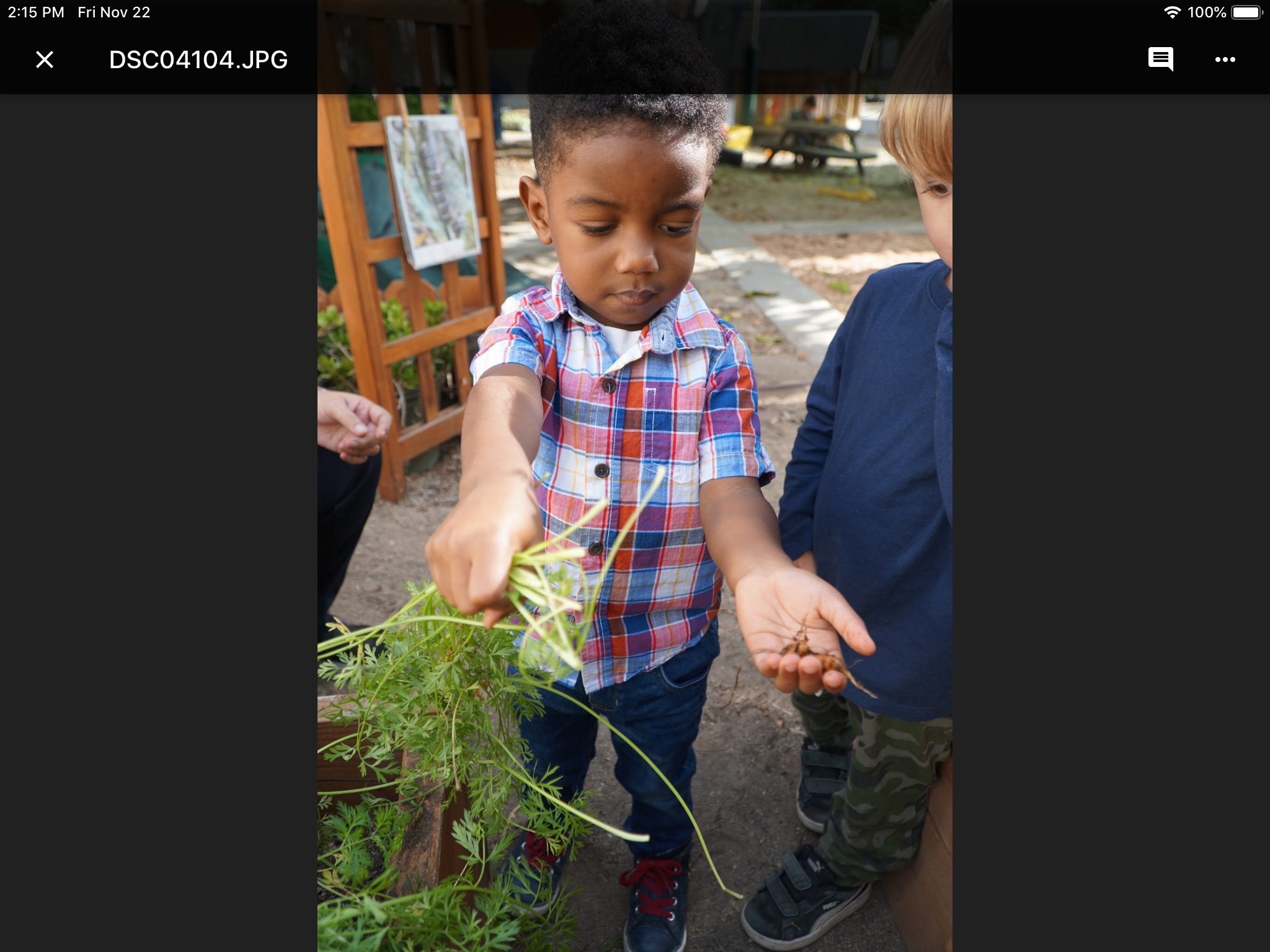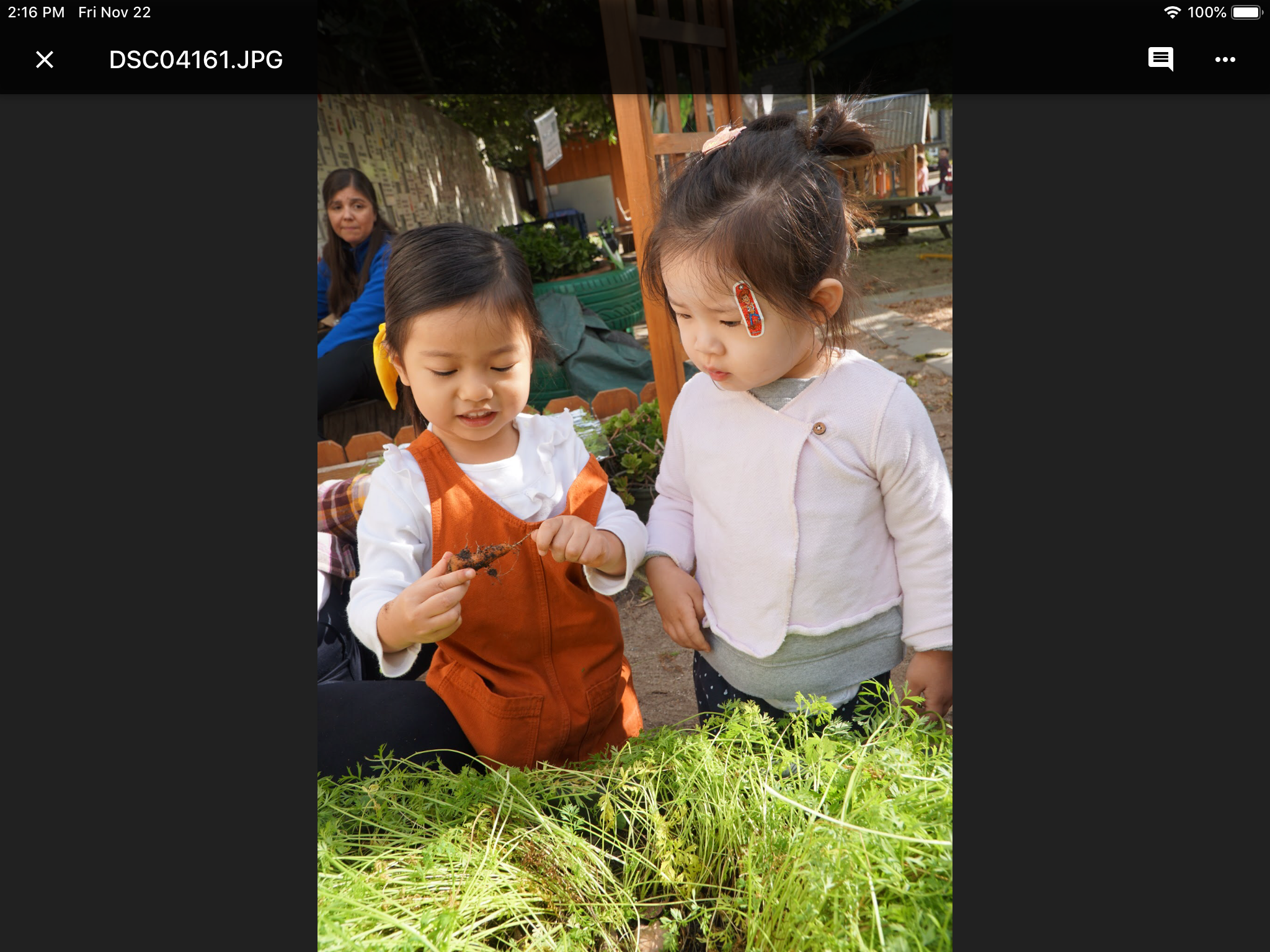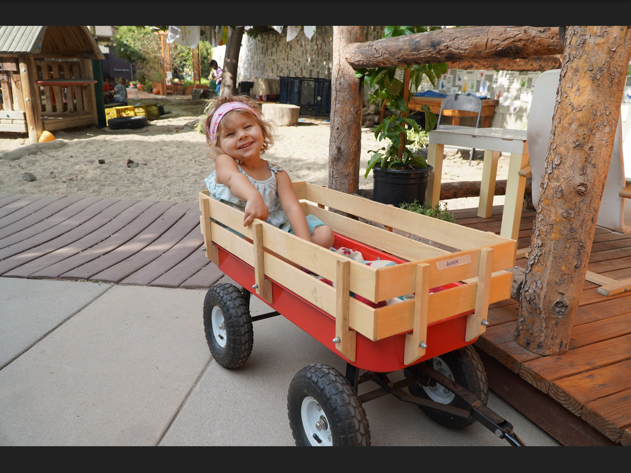 How awesome it was to have the farm come to us. While our older classrooms went to Underwood Farm we stayed behind and enjoyed a fun day riding on Wagon, picking some fresh carrots, petting farm animals such as pigs, goats, sheep, bunnies and an alpaca in a farmer attire. Fun, fun, fun![]()