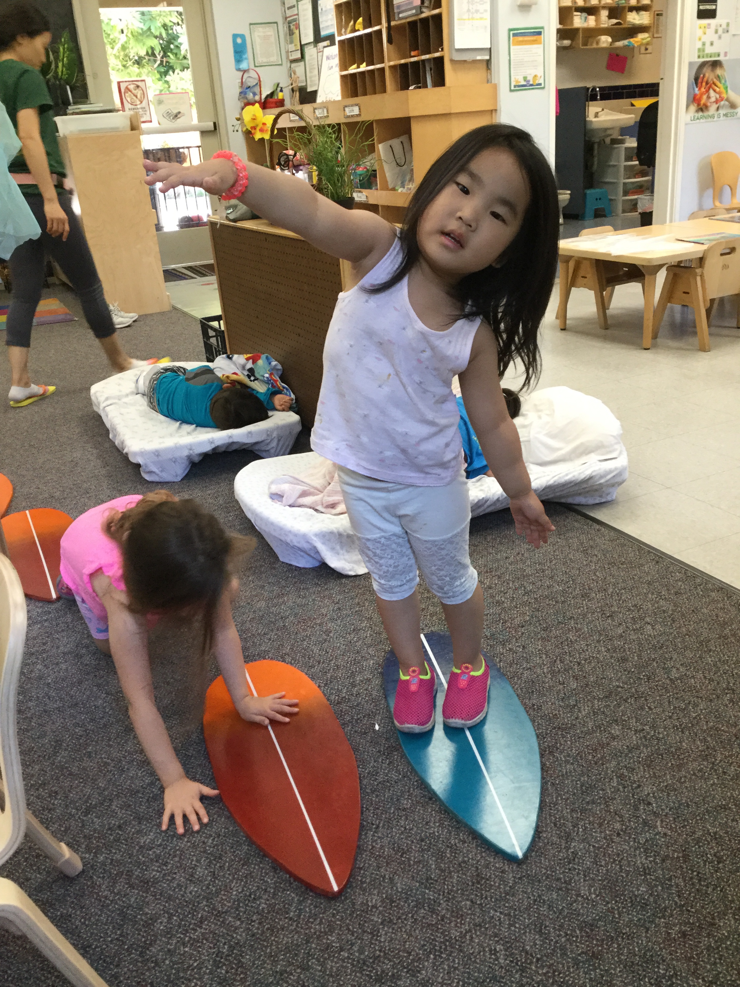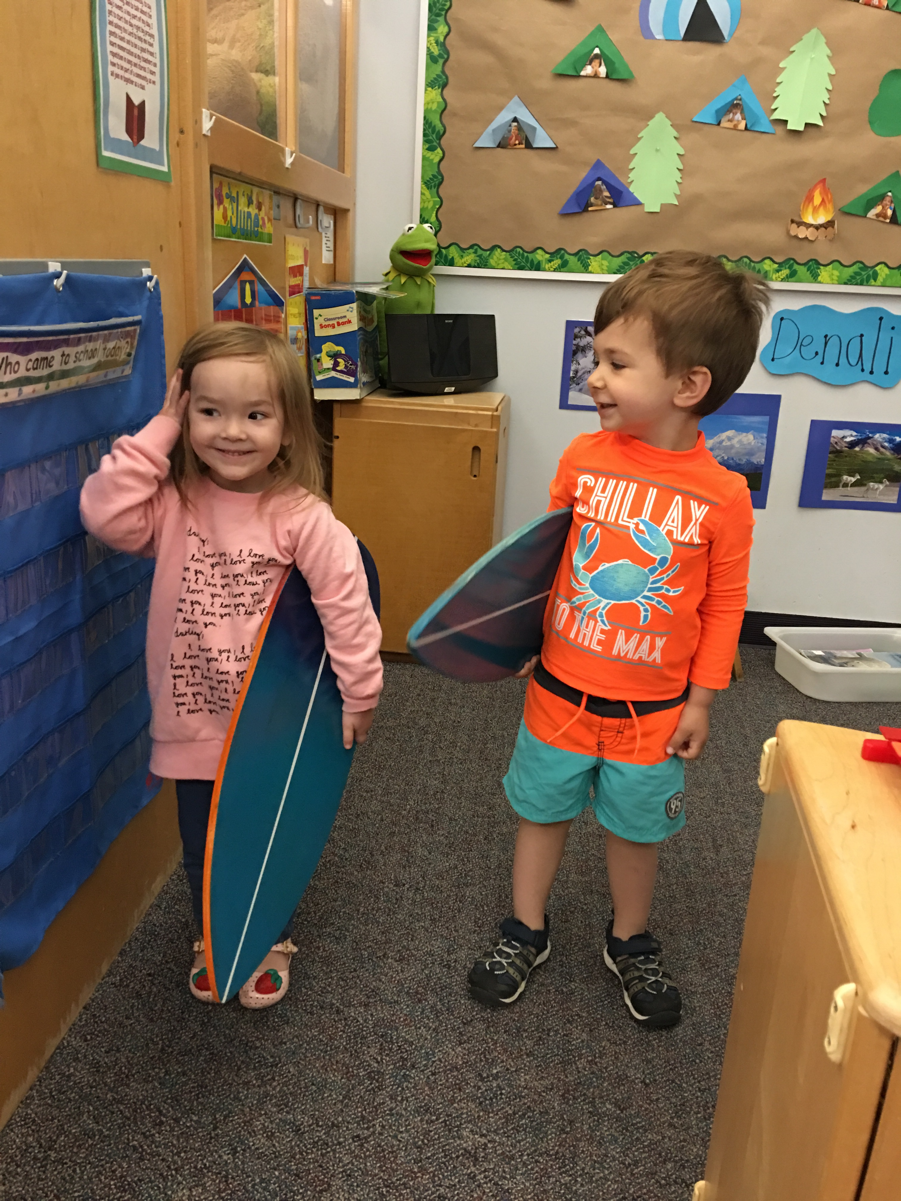 This week we were back in the warm water beaches! We got to run around and splash in water again at the big field and on our preschool campus. We got to make cool shirts with sharpies-we can’t wait to show you! Today we got to go to the big school and play with Hula Hoops from Hoop It Up! The kids had a blast! Enjoy pictures from today! 🙂