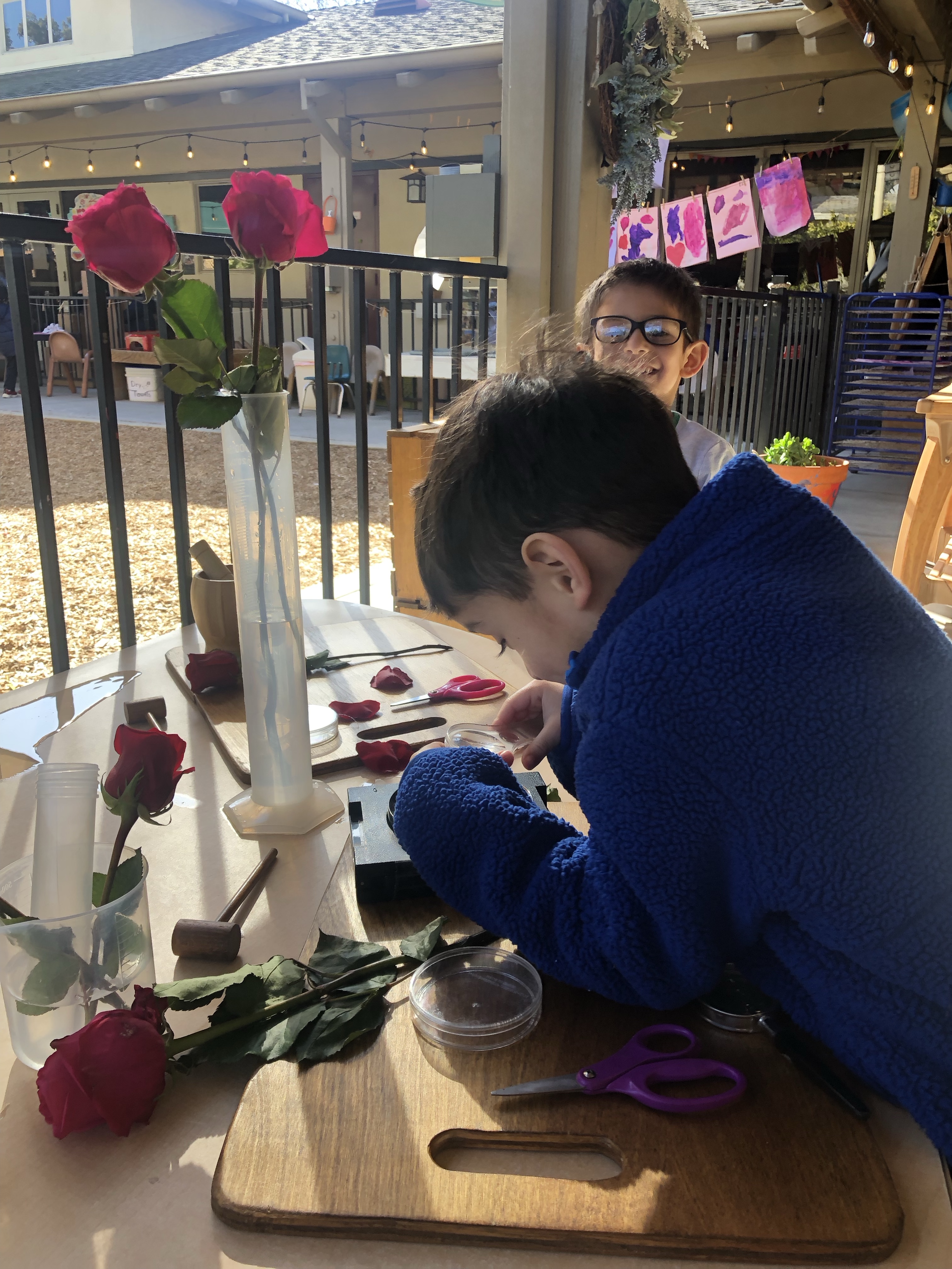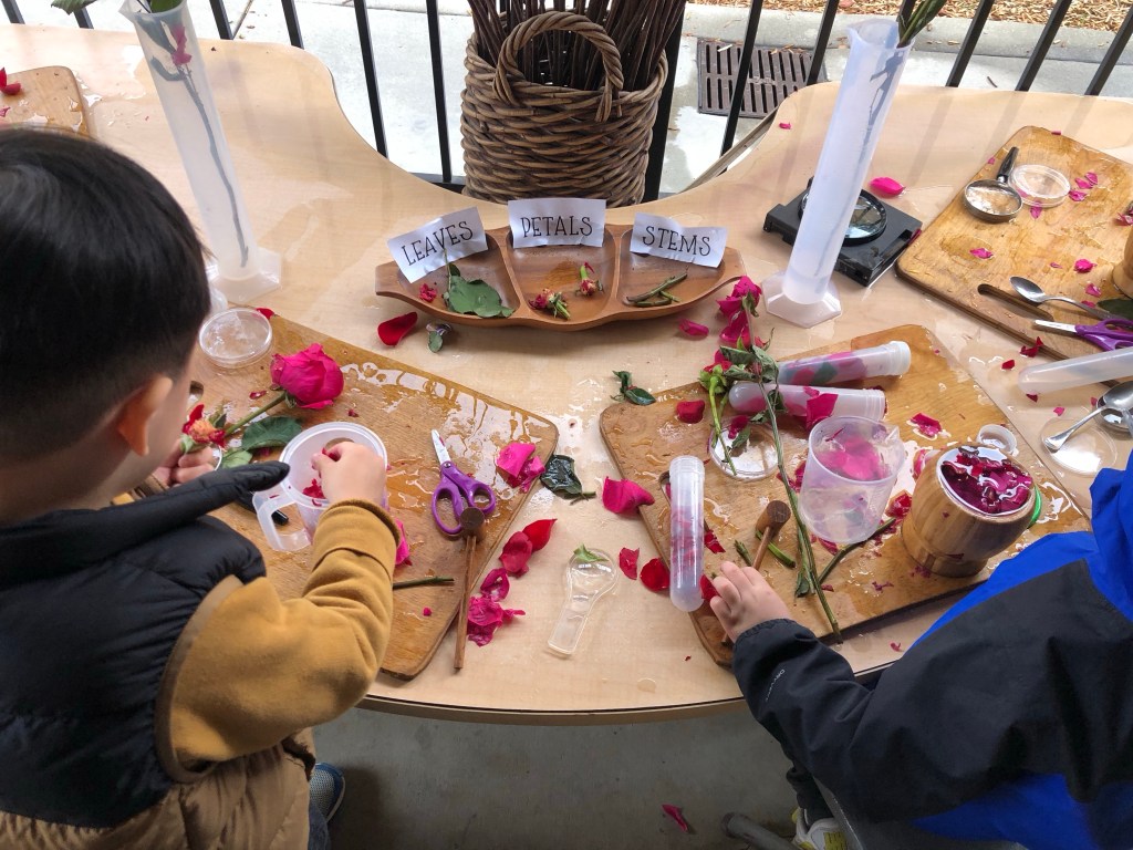 Check out the way our little ones used the petals to color the water, make observations with magnifying glasses, and discuss their step-by-step process with friends.
