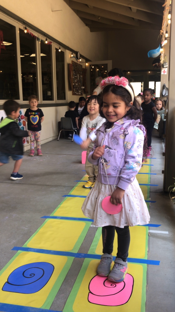 This past month our friends played a life-size version of the children’s board game, Snail’s Pace Race on the Patio with Ms. Kristen.