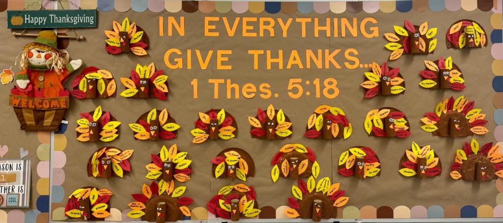 This month in Preschool, we are focusing on the theme of Thankfulness! As 1 Thessalonians 5:16-18 reminds us, “Rejoice always; pray without ceasing; in everything give thanks; for this is God’s will for you in Christ Jesus.” Throughout the month, we will read books, sing songs, and reflect on the things we are grateful for during circle time. Here are some of the books we are enjoying: