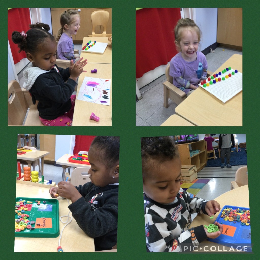 We read the book “ Little blue and little yellow, by:Leo Lionni.” We used the context to develop many activities for the month of March. Yellow and blue marble painting, easel painting, yellow playdough for a few days, then blue playdough. When the colors were combined it gave us different shades of green.