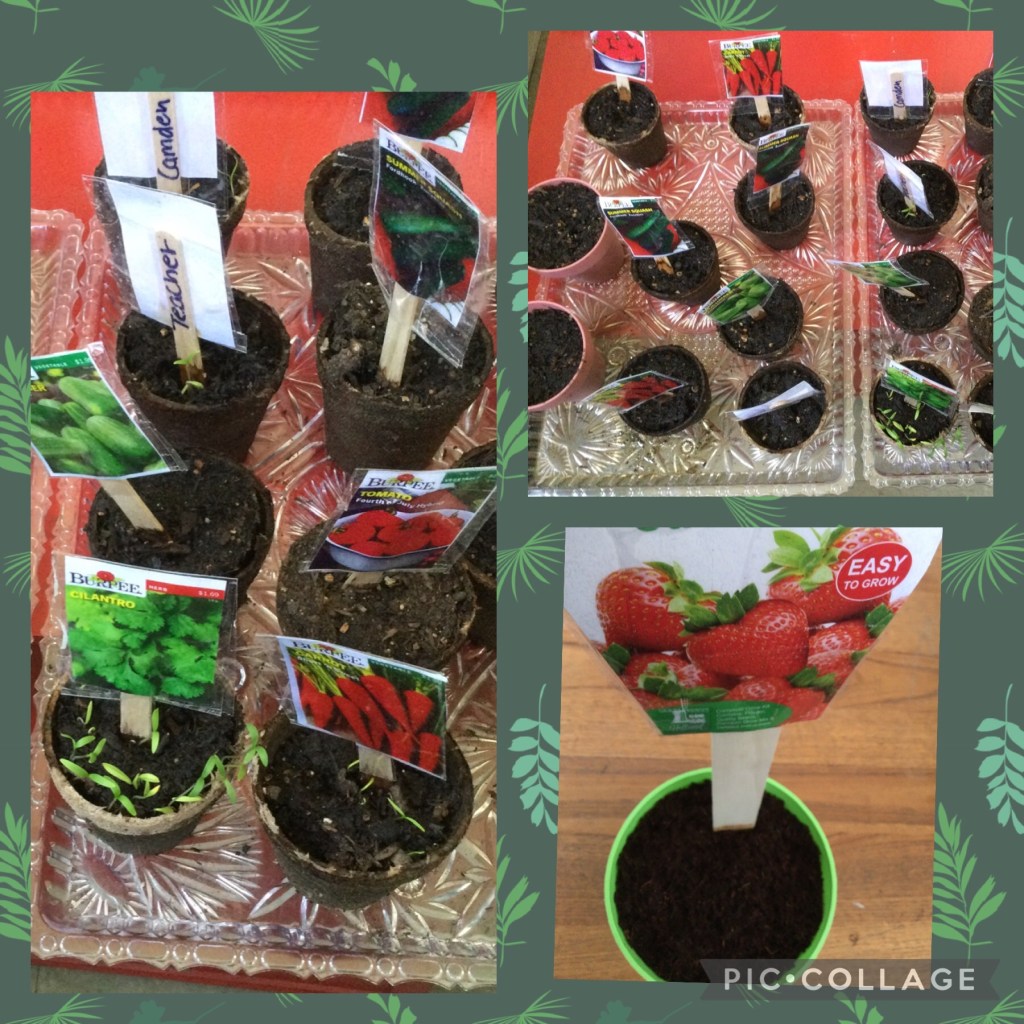 On Fruit Day we planted strawberry seed, we are currently watching the seedlings appearing on the surface.