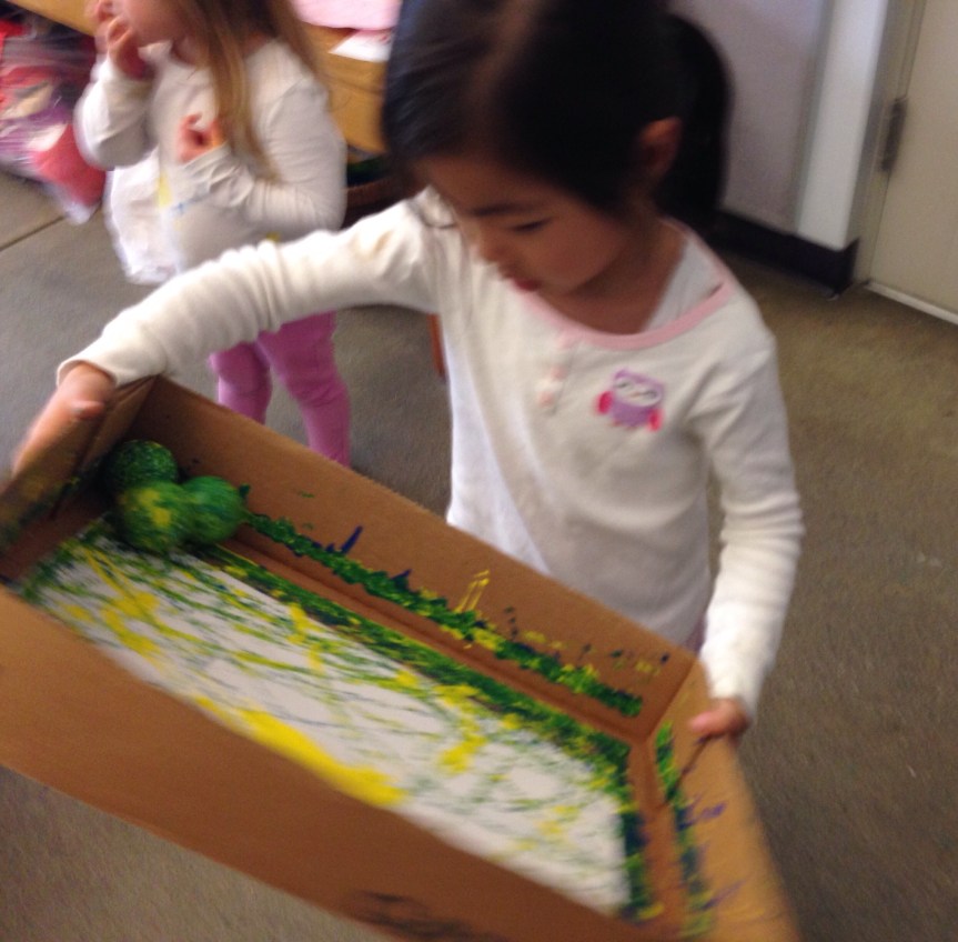 The children in the younger pod learned about Jackson Pollock and his approach in painting. He is an American painter and a major figure in the abstract expressionism movement. He was known for his unique style of drip painting and never touching the canvas with the brush.